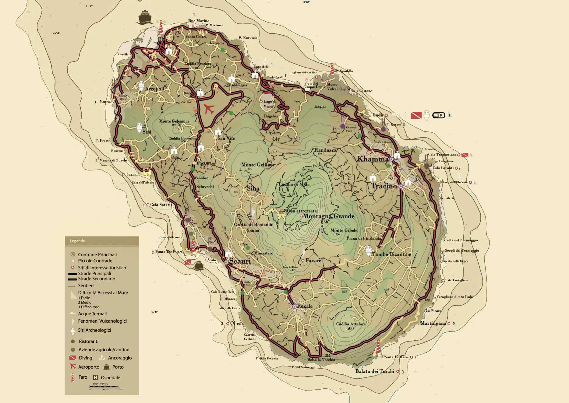 Tutta l'isola è suddivisa in piccole e caratteristiche contrade.